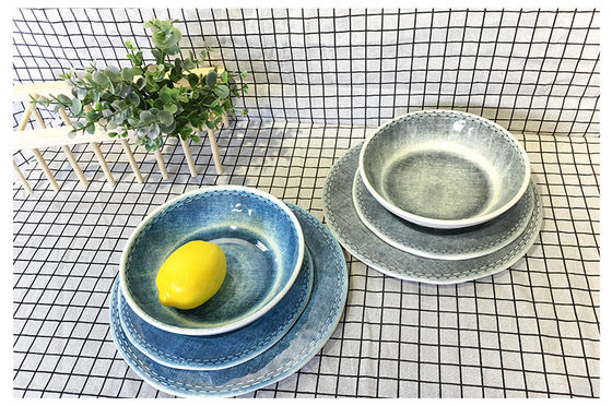 Wholesale melamine imitation porcelain tableware including plastic bowls and plates designed for commercial and residential use.